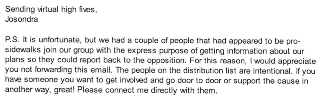 Josandra Notter lied to residents. A No vote simply meant residents are the ones to approve sidewalks where a yes vote meant council could take this right from voters. Neither vote “closed the door on sidewalks”, this was a lie meant to scare people to vote yes, misleading them into thinking it was needed to get sidewalks. See the proof of this deception in the letter released by the village’s lawyer on the issue @ https://franklinvillagers.org/vc-issues/